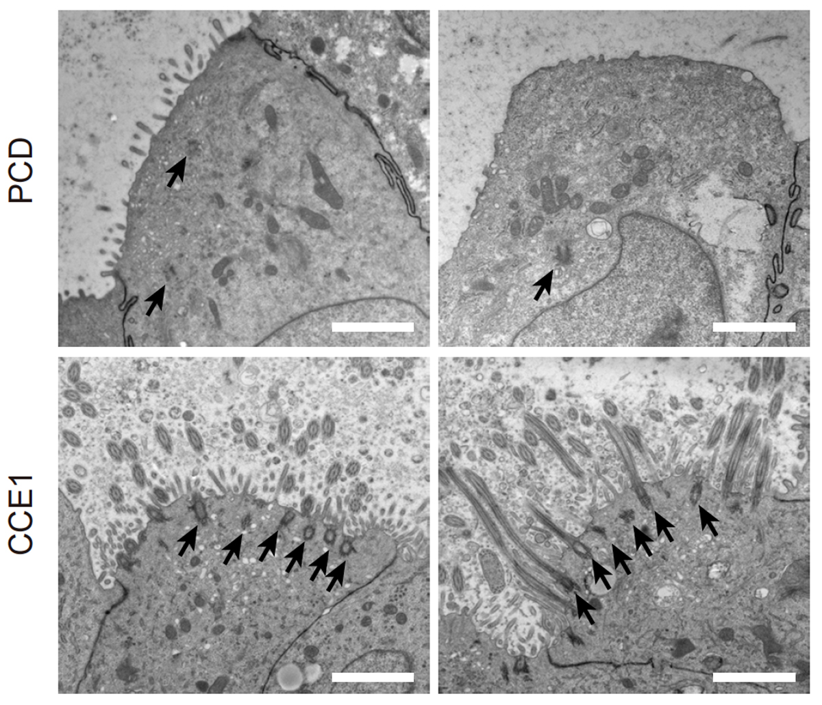 CCNOはヒトの多線毛形成において、デューテロソームを介した中心小体増幅に必須の役割を担っており、その機能不全がPCDにおける重篤な多線毛形成減少を引き起こす一因であることが確認されました。