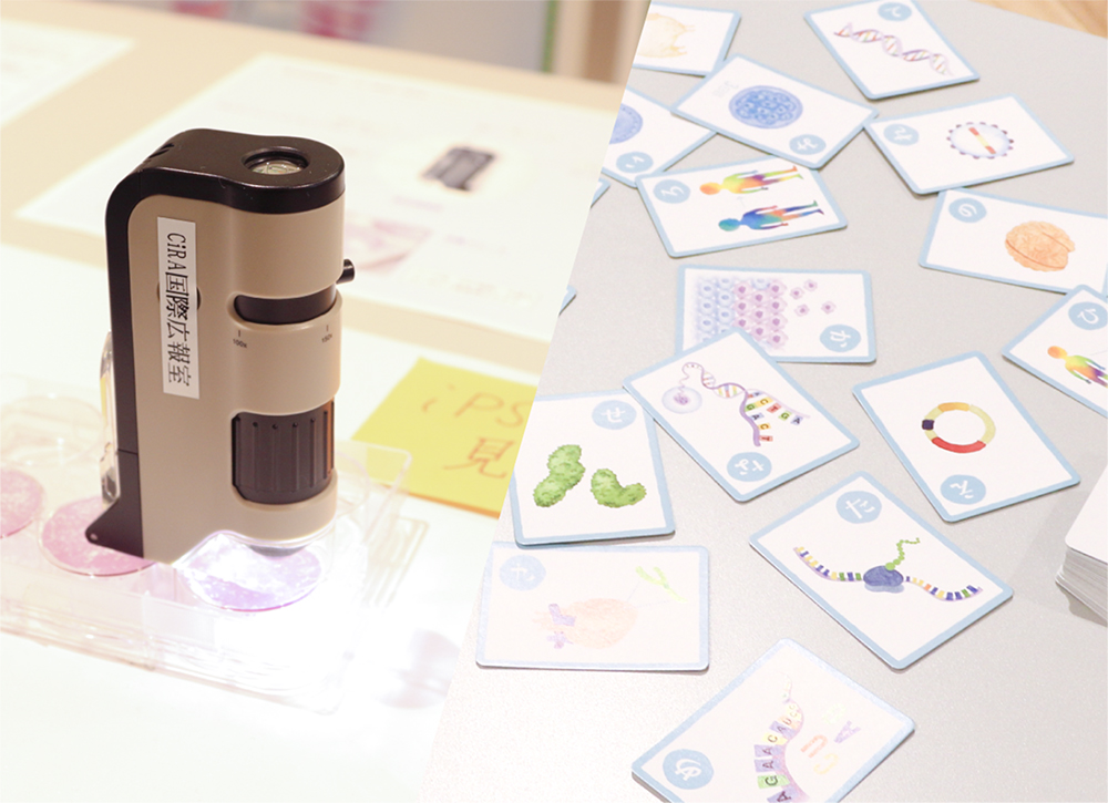 CiRAのコーナーでは、iPS細胞の顕微鏡観察や細胞について学べる教材の展示、iPS細胞の研究についてわかりやすく紹介したポスターの展示などを行います。ぜひお気軽にお立ち寄りください。